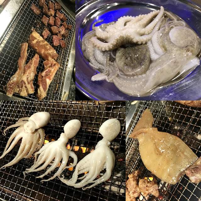 在美味肉品強襲而來的風暴之中,僅存的理智讓所剩無幾的肚皮空間留給了更多的海鮮食材,但沒想到海鮮食材所帶來的滋味卻也是不遑多讓好吃地讓人眼角硬是閃爍著淚光擠了滴眼淚(應該是被碳烤煙燻的),口感爽脆的小章魚經過碳烤將風味提昇後,讓原本食材特有的鹹鮮味嶄露無疑,為這頓帶給查理有著全新感受與高度的吃到飽韓國烤肉體驗劃上了完美的句點與期待再訪的渴望。