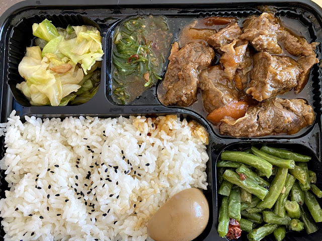 跟跟其它口味的便當餐盒不同的是,這份紅燒牛腩飯不但在份量上一樣大碗實在,口味上更帶有「超值」的感受,滷製入味的牛肉每一口咀嚼起來都可以吃到滿滿的肉香,醬汁更有來自蔬菜的甜味與牛肉香,一口米飯一口醬汁,鹹香美味會讓人吃來分外滿足。